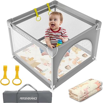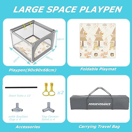 • 【Alfombra de juego suave para bebés】 el parque para bebés viene con una alfombra parque infantil bebe acolchado plegable (90 x90cm), una alfombra de juego más gruesa y suave, perfecta para que su bebé gatee o juegue con ella. La alfombra de juego también se puede utilizar sola en el salón y al aire libre. Ofrece una perfecta amortiguación y antideslizante para evitar que el bebé se caiga. La alfombra es fácil de plegar y portátil para picnics.