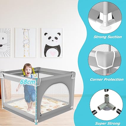 • Centro de actividades seguras】Este parque para bebés mide 90×90 x 68 cm y proporciona suficiente espacio para jugar, gatear y explorar libremente. Es muy adecuado para apartamentos y familias pequeñas. Altura científica y segura de 68 cm (más segura para jugar, estar de pie y gatear), especialmente diseñada para bebés de 6 meses a 6 años. El parque infantil está completamente envuelto en una tela suave, lo que lo hace más suave y seguro que los corralito bebe de plástico.