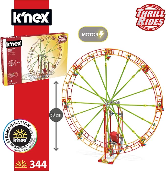• ¿Eres un amante de los parques de atracciones? ¡K’nex Thrill Rides es para ti! ¡Construye una increíble noria motorizada con K’nex Noria Revolution!