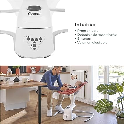 - INNOVADOR: el balancín cuenta con 5 velocidades de balanceo, con programación (10, 20 / 30 min) y con un detector de movimiento (el balanceo se reinicia automáticamente si tu bebé se mueve).