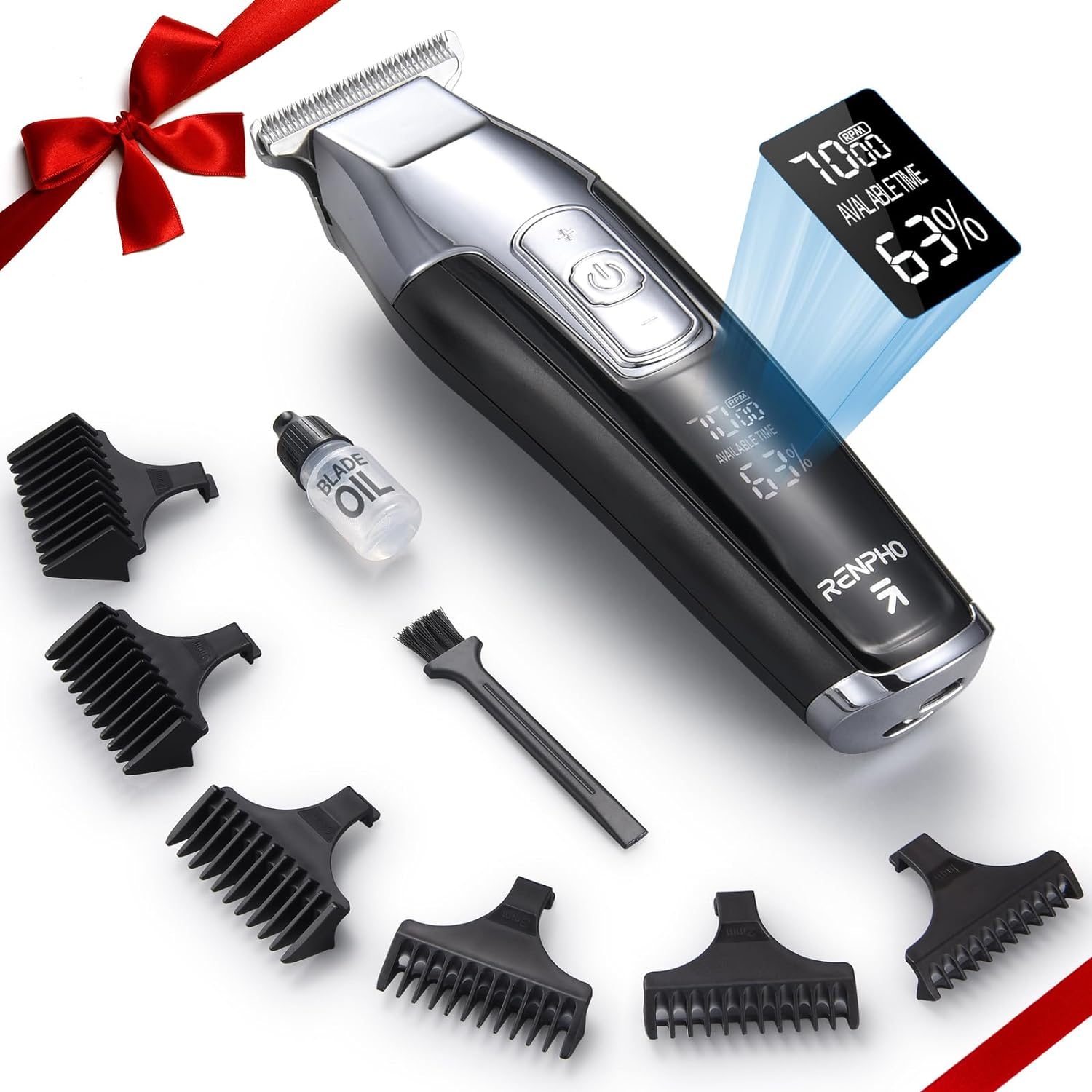 • PANTALLA LED INTELIGENTE & MENOS RUIDO – Cuenta con una pantalla LED inteligente, que muestra el indicador de carga, la duración de la batería restante, y el nivel de velocidad seleccionado (4 velocidades: 5500, 6000, 6500 y 7000rpm). Controle la velocidad de corte del cabello según sus preferencias. En la velocidad más baja, sólo produce 50dB, por lo que lo hace ultra silencioso. Nota: Aceite la cuchilla antes de cada uso.