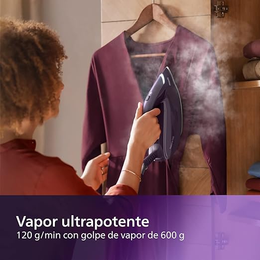 - Elimina pliegues con facilidad: el vapor continuo de hasta 120 g/min de la plancha vaporeta elimina el esfuerzo al planchar – Verás los pliegues desaparecer con un golpe de vapor extra de hasta 600 g donde necesites.
