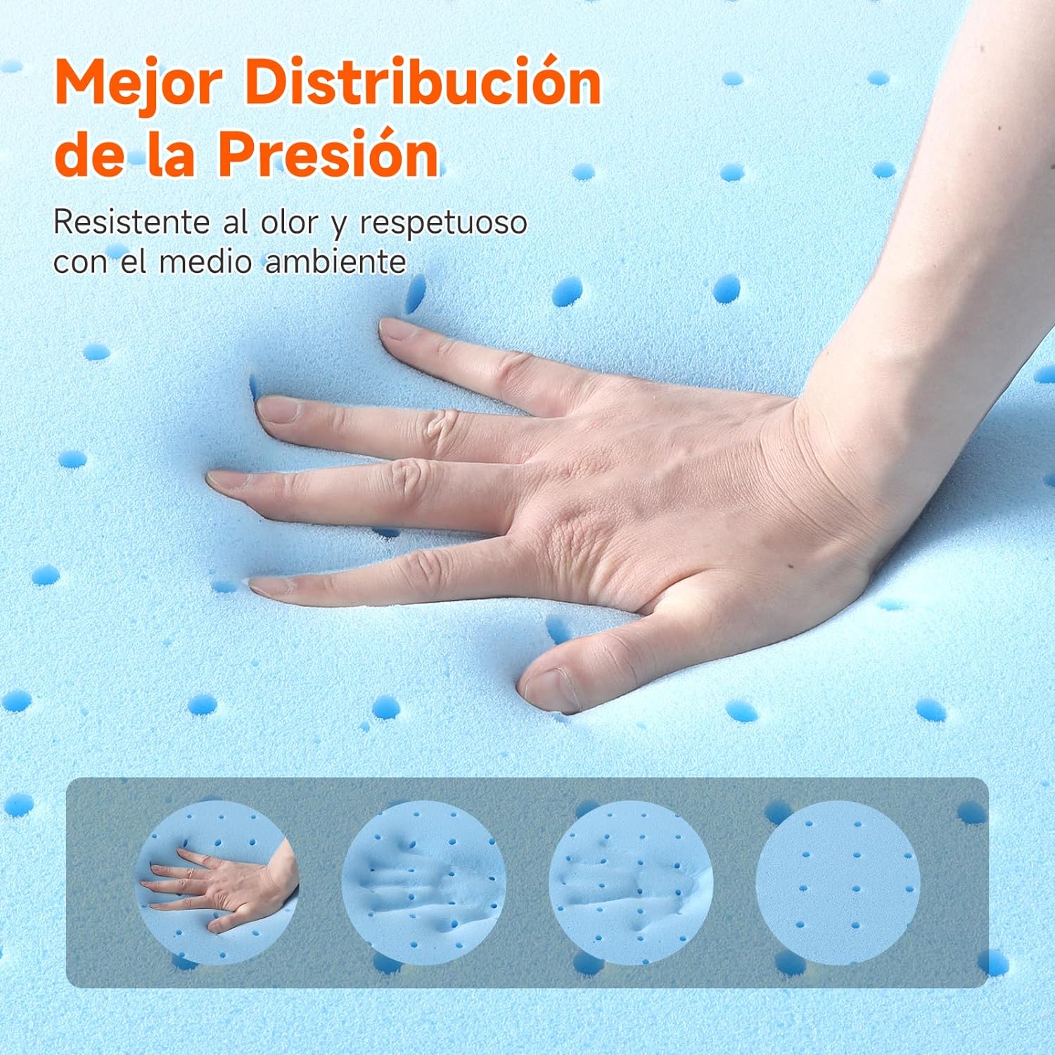 - 💤Zonas de alivio de presión: Maxzzz topper viscoelástica con gel agregan materiales de soporte adicionales en áreas específicas para aliviar puntos de presión específicos del cuerpo, como el cuello, los hombros y las caderas, reduciendo la incomodidad.
