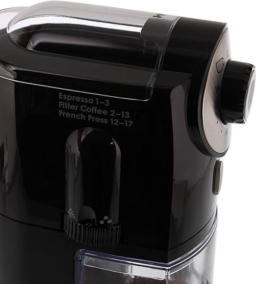 - Café molido personalizado: Disco plano profesional, 17 opciones de molido, Cantidad de café ajustable de 2 a 14 tazas, Capacidad máxima: 200 g
