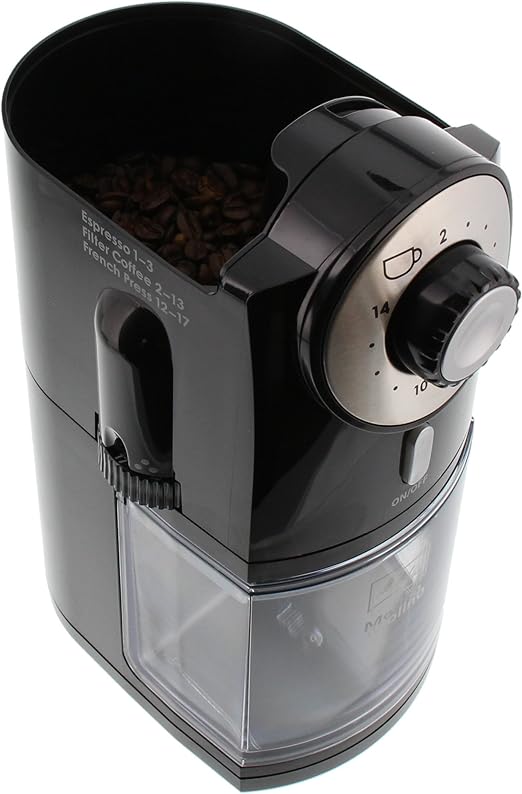 - Contenido: 1 Molinillo de café eléctrico Melitta, 1019-02, Negro, Dimensiones (AnxAlxPr): 16,5 x 25,5 x 9,5 cm, Peso: 1,21 kg